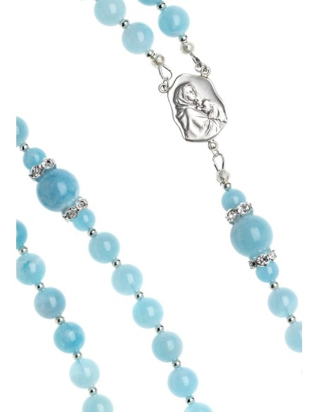 Finest jewellery Rosary made in sterling silver with Light Blue Angelite beads and Strass Paters