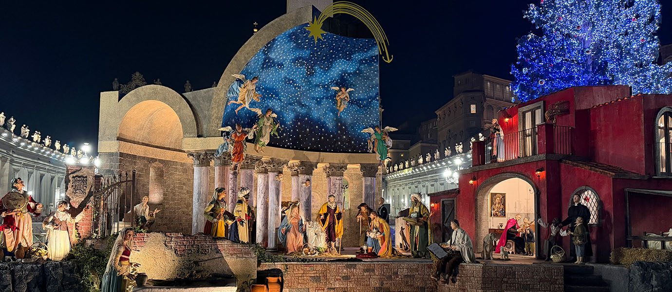 The Nativity scene displayed each year in St. Peter’s Square is deeply rooted in Christian tradition. Its purpose is not decoration, but contemplation. Every element is designed to guide the observer toward reflection on the mystery of the Incarnation.