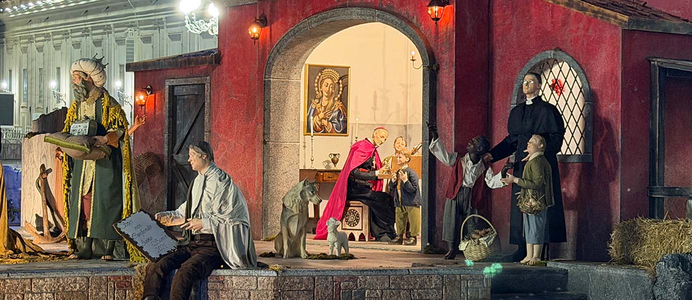 The presence of Saint Alphonsus Maria de Liguori and the Servant of God Father Enrico Smaldone in this year’s Nativity scene is a deliberate tribute to pastoral charity and closeness to the most vulnerable. Saint Alphonsus, a Doctor of the Church and founder of the Redemptorists, is remembered for bringing the message of the Gospel to ordinary people with compassion, clarity, and mercy. Father Enrico Smaldone, known for his dedication to the deaf and the marginalized, embodies a life of silent service and concrete love. Their inclusion connects the birth of Christ to lives fully devoted to mercy, education, and spiritual care, showing how the mystery of the Nativity continues to bear fruit through acts of humility and self-giving in every age.
