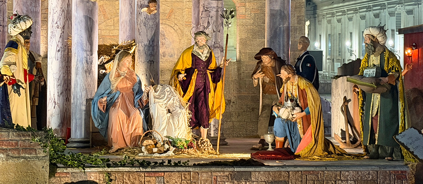 Placed in an open and universal space, the Nativity scene offers its message to all visitors. It transforms the Square into a place of encounter, where the story of Christ’s birth is presented in a language understood beyond words.