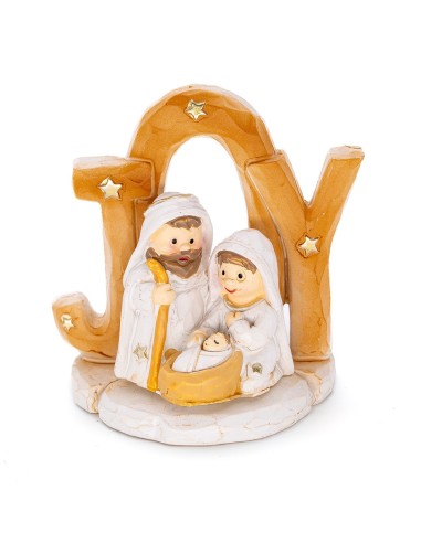 Joy Nativity Scene beautifully portrays the Holy Family embraced by the word JOY, symbolizing the true spirit of Christmas and divine love. A perfect decorative piece to bring warmth and serenity to your home during the Holy Season.