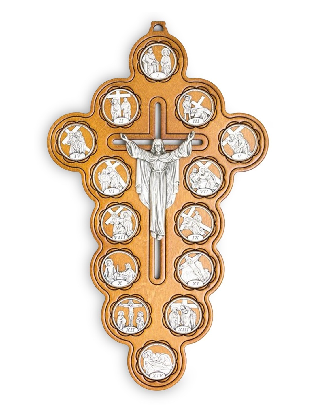 The Lenten Journey Contemplation bundle is designed to foster silence, reflection, and spiritual focus during Lent. This exclusive set includes a Via Crucis crafted in wood and metal, a bilaminated Sterling Silver Divine Mercy icon, and a St. Damiano crucifix pendant. Each piece contributes to a meaningful devotional path, combining traditional Christian imagery with refined craftsmanship.