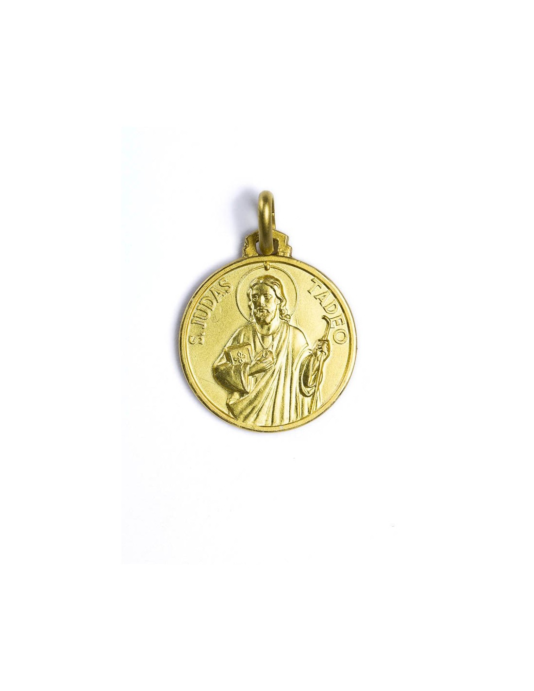 A finely detailed devotional medal struck in sterling silver and finished with 24k gold plating, featuring a traditional depiction of Saint Jude Thaddeus, known and venerated through the Gold Plated St. Jude Thaddeus Medal as a symbol of hope and perseverance in times of difficulty. Made in Florence.