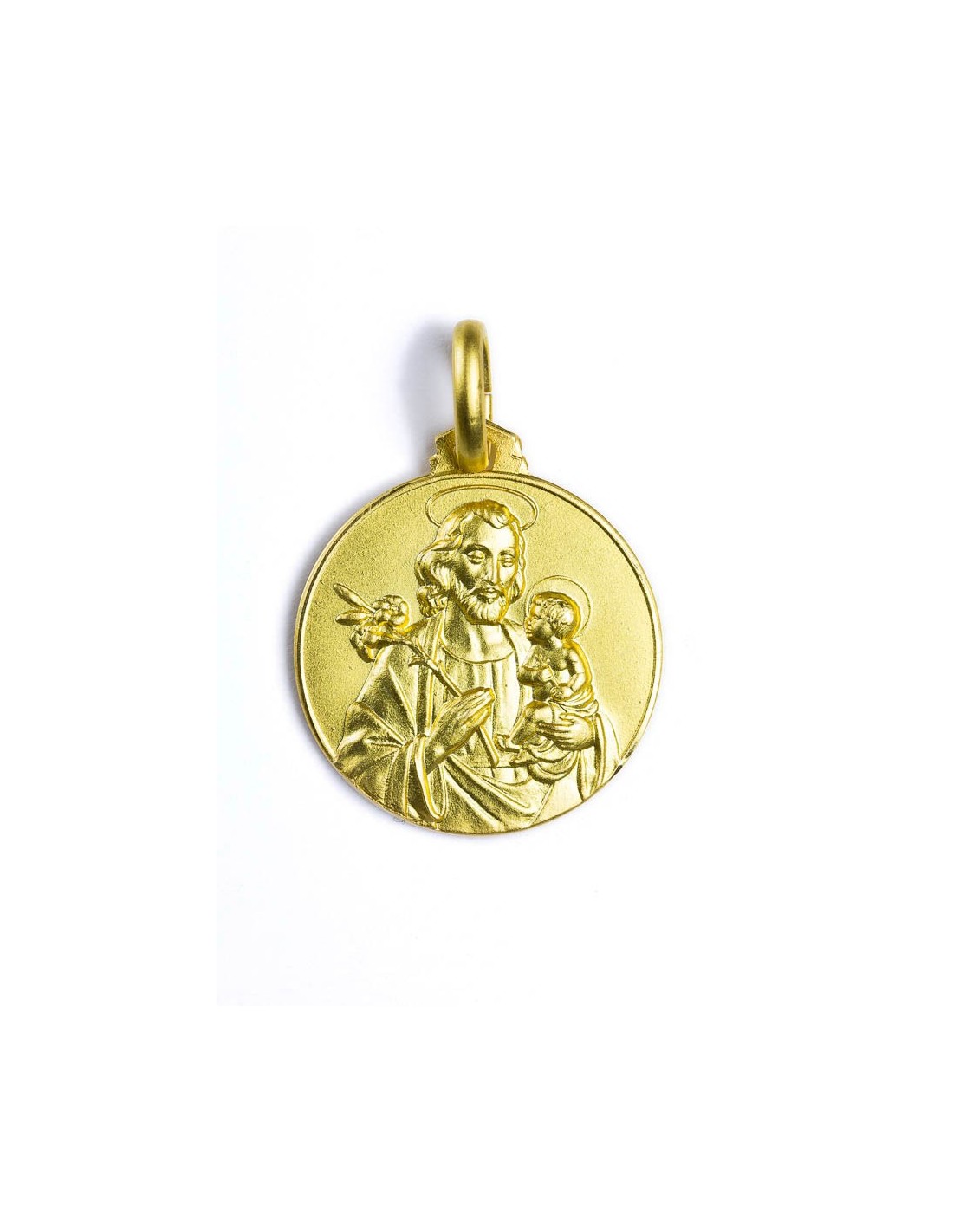 Gold Plated St. Joseph Medal crafted in Sterling Silver and finished with 24k gold plating, depicting Saint Joseph as a symbol of protection, humility, and devoted fatherhood. Made in Florence.