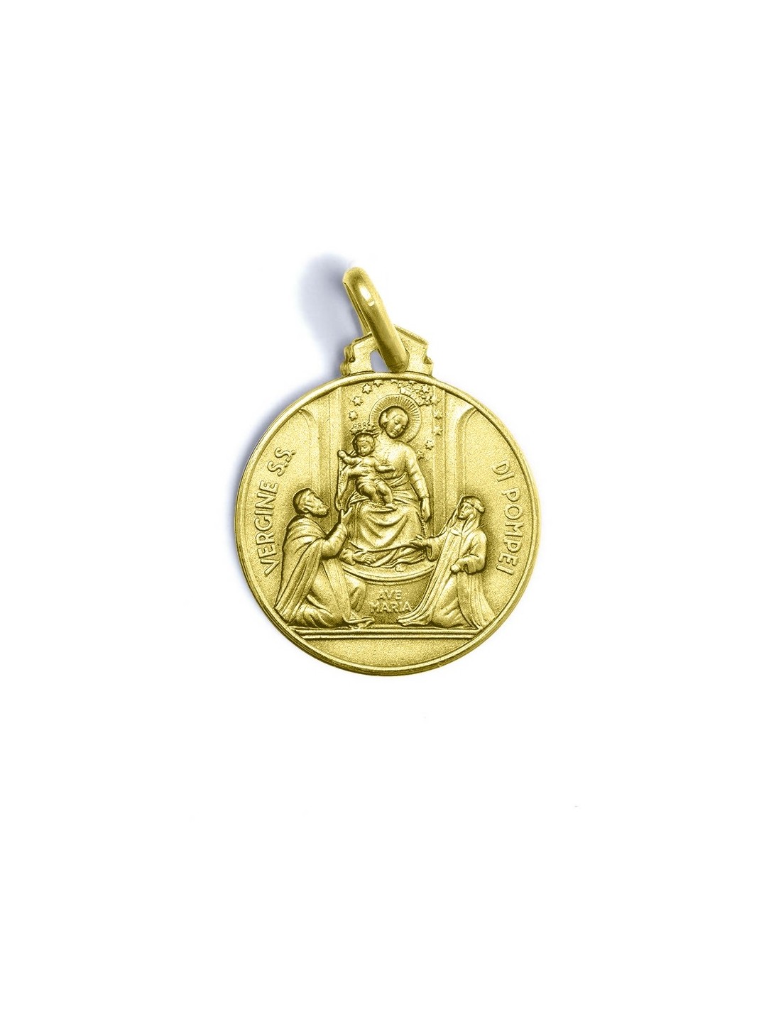 This Gold Plated Our Lady of Pompeii Medal is crafted in Sterling Silver and finished with elegant 24k Gold Plating. Carefully struck to achieve remarkable clarity and depth, it features a finely detailed image of Our Lady of Pompeii, ideal for daily wear, prayer, or as a meaningful religious gift. Made in Florence.