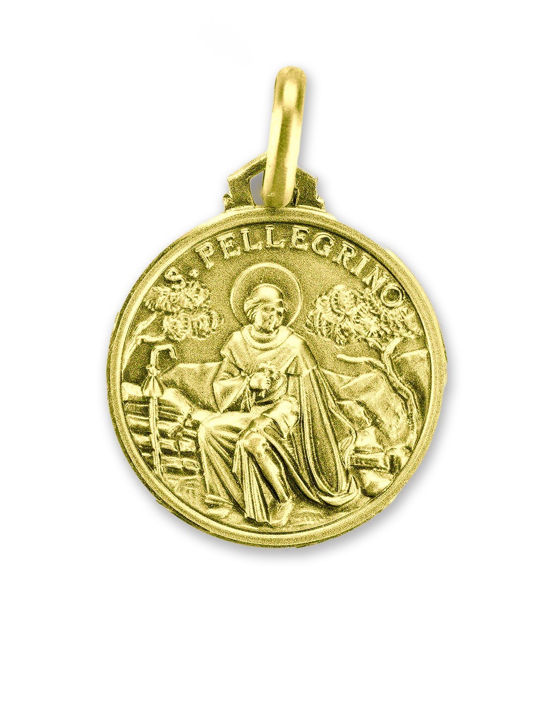 Gold Plated St. Peregrine Medal crafted in Sterling Silver and finished with refined 24k Gold Plating. Carefully minted to achieve exceptional clarity and depth, it features a detailed image of St. Peregrine, patron saint of those suffering from serious illness, making it a meaningful devotional medal for prayer, comfort, and everyday wear. Made in Florence.
