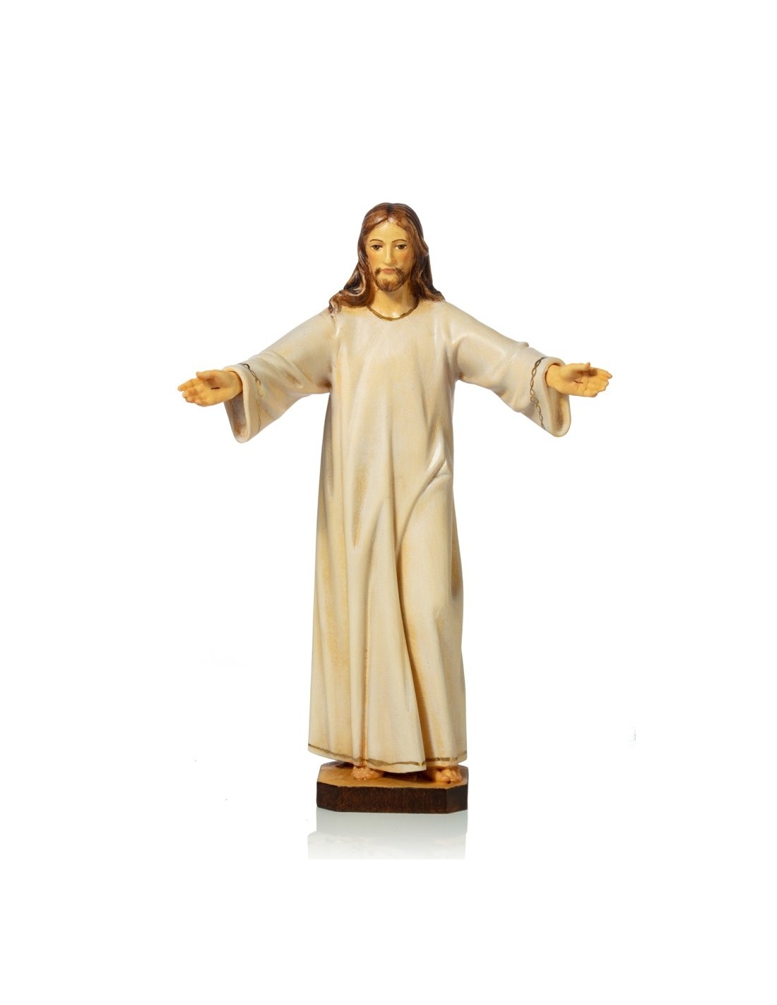 A finely crafted pastoral table cross in metal, mounted on hand-carved olive wood that follows its silhouette and rests on a solid olive wood base. Inspired by the pastoral cross of Pope Francis, this piece of sacred art brings a sense of peace, devotion, and serenity to every environment where it is displayed. Made in Italy.