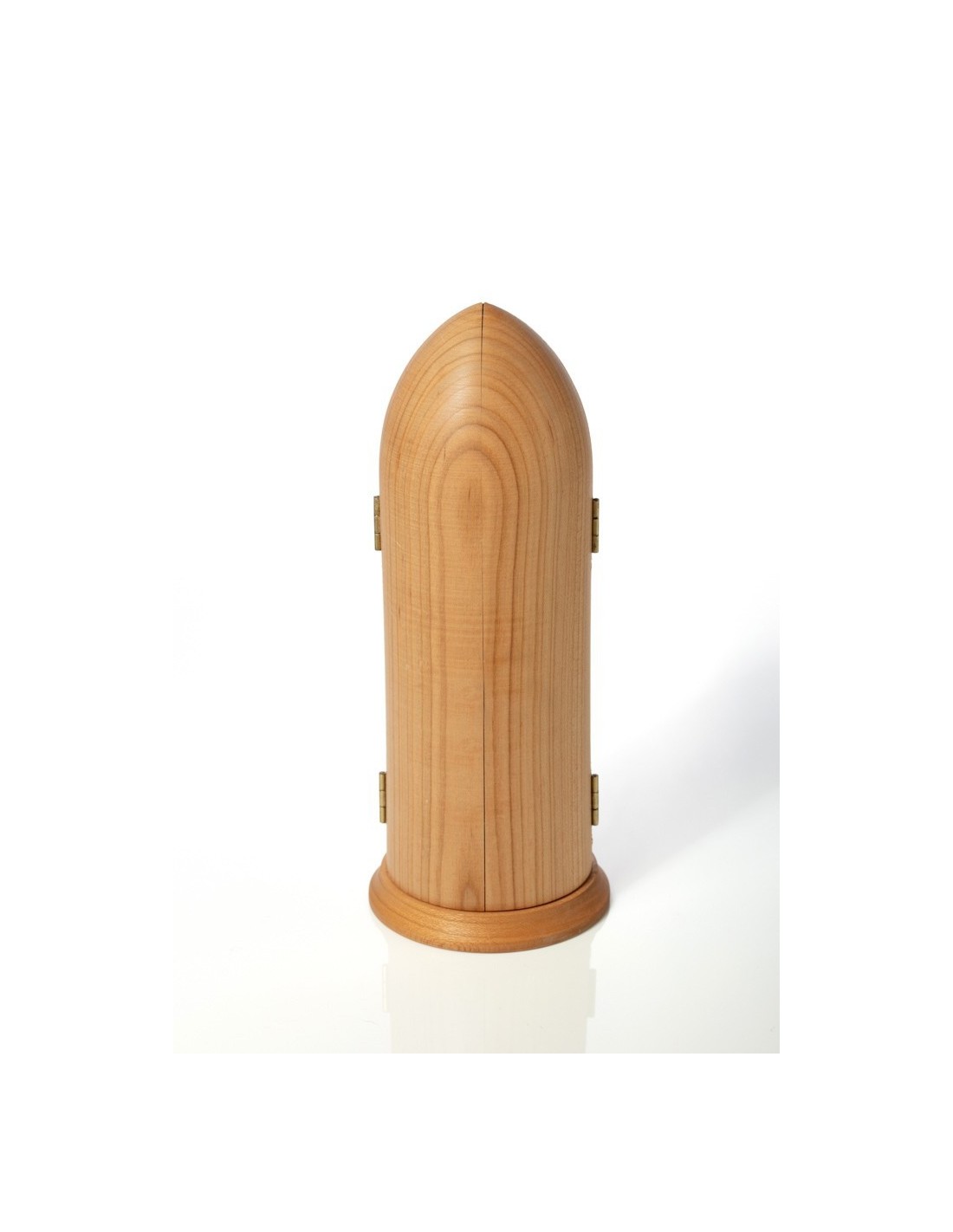 The Our Lady of Lourdes Wood Statue with Shrine features a finely crafted wooden statue of the Virgin Mary housed within a smooth wooden shrine with clean, handle-free doors. Its understated design highlights devotion and simplicity, making it ideal for prayer and quiet contemplation.