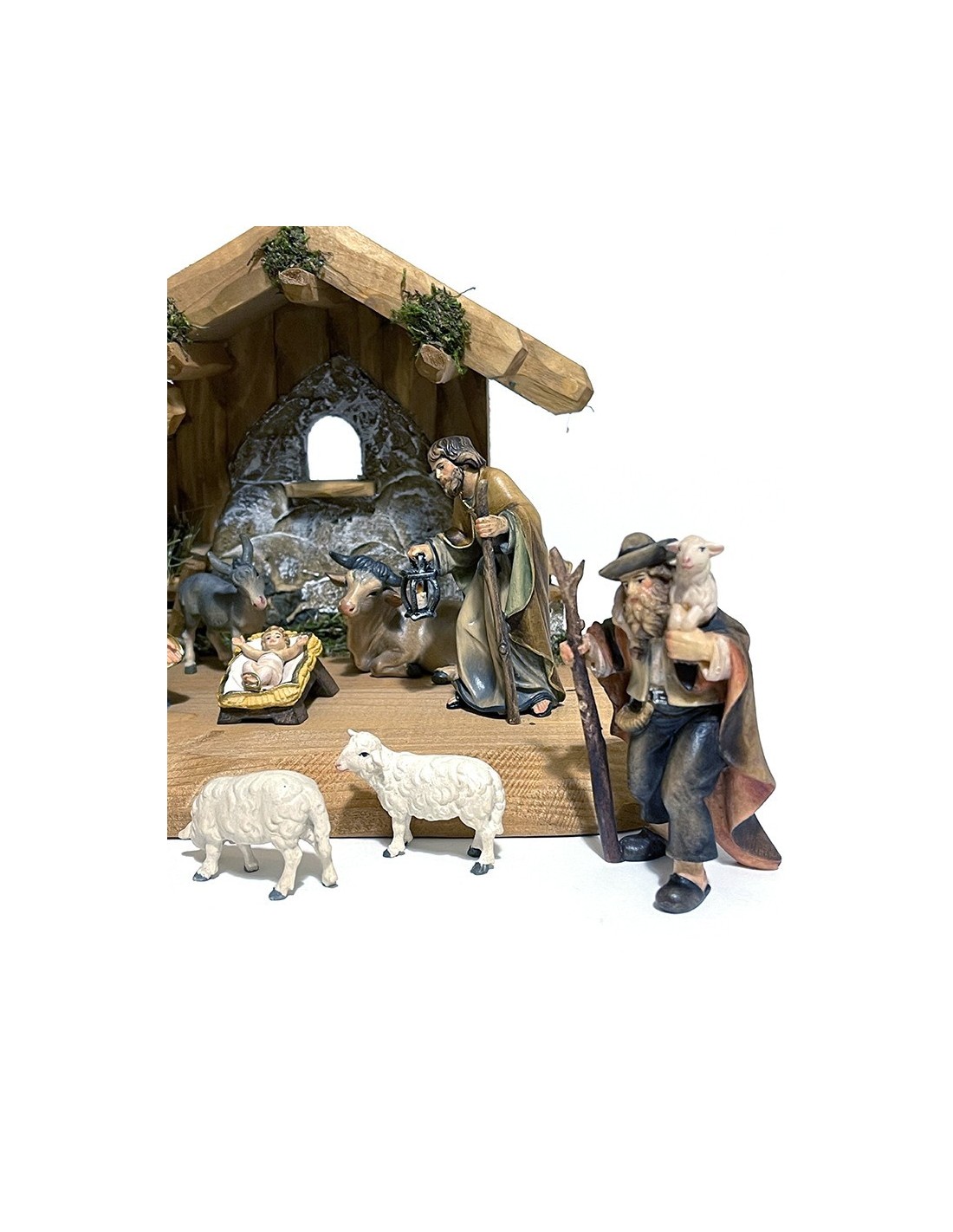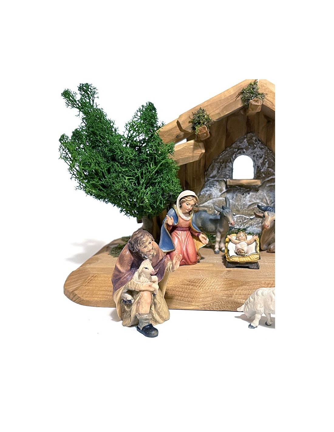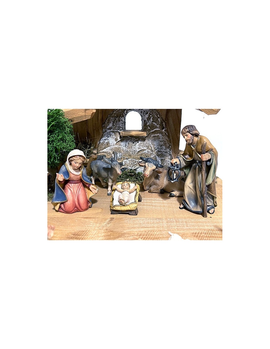 The Hand-Carved Wooden Nativity Set 10-Piece Christmas Manger Scene is crafted from fine Alpine wood of Val Gardena, renowned for its durability and elegance. Each figurine is shaped and painted entirely by hand, allowing the natural character of the wood and the craftsmanship of Val Gardena artisans to shine through in every detail.