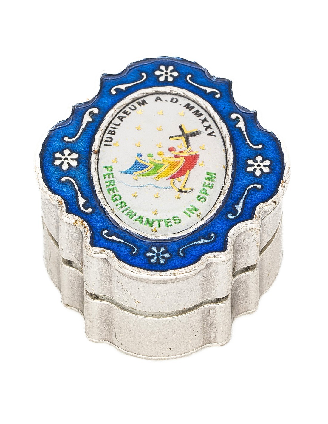 A beautiful blue crystal rosary featuring the official Jubilee 2025 logo on the centerpiece. Includes a lovely metal box with blue enamel and the Jubilee 2025 logo printed on the lid. Made in Italy.