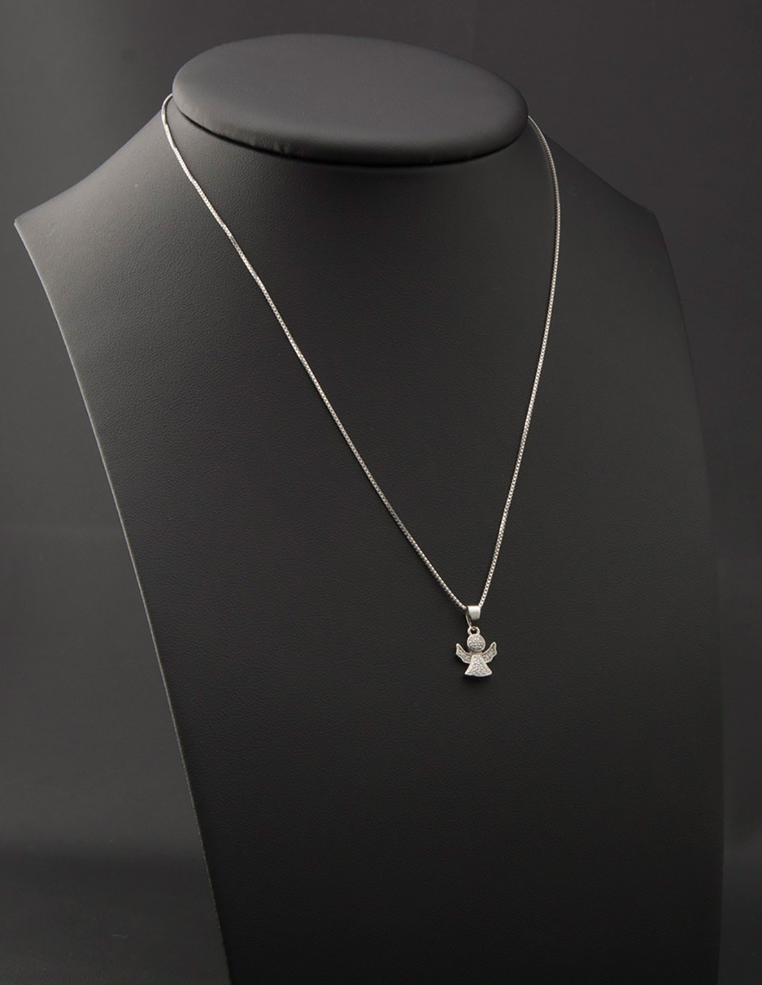 Made from sterling silver jewelry, this necklace combines durability with a delicate, polished appearance. The angel silhouette is enriched with carefully placed stones that enhance its graceful lines and highlight its protective and inspirational symbolism.
