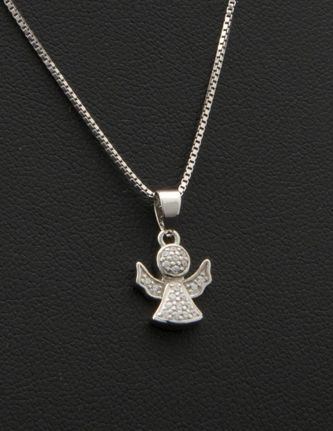 Sterling Silver Cubic Zirconia Angel Pendant Necklace
