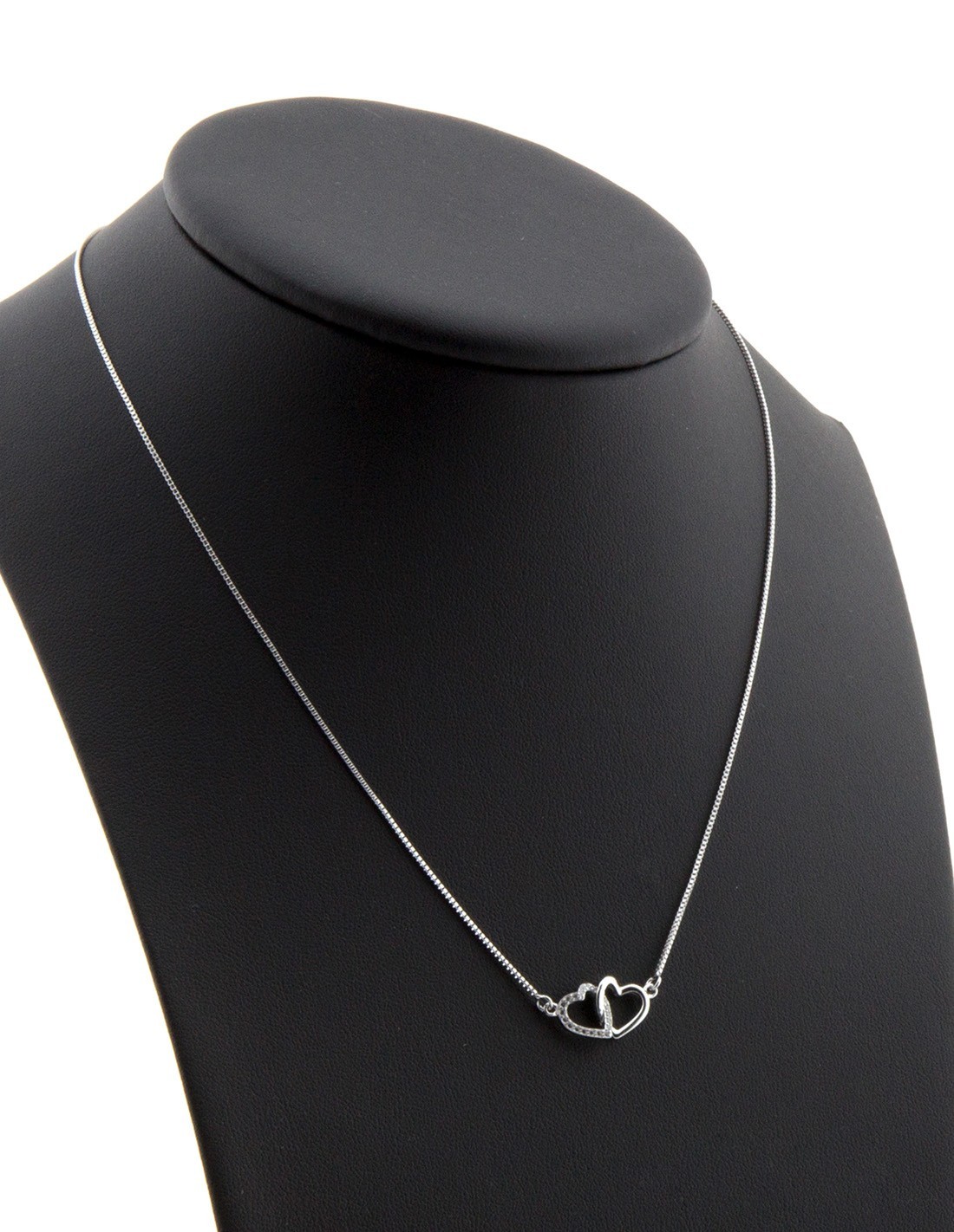 Sterling Silver Cubic Zirconia Double Heart Pendant Necklace