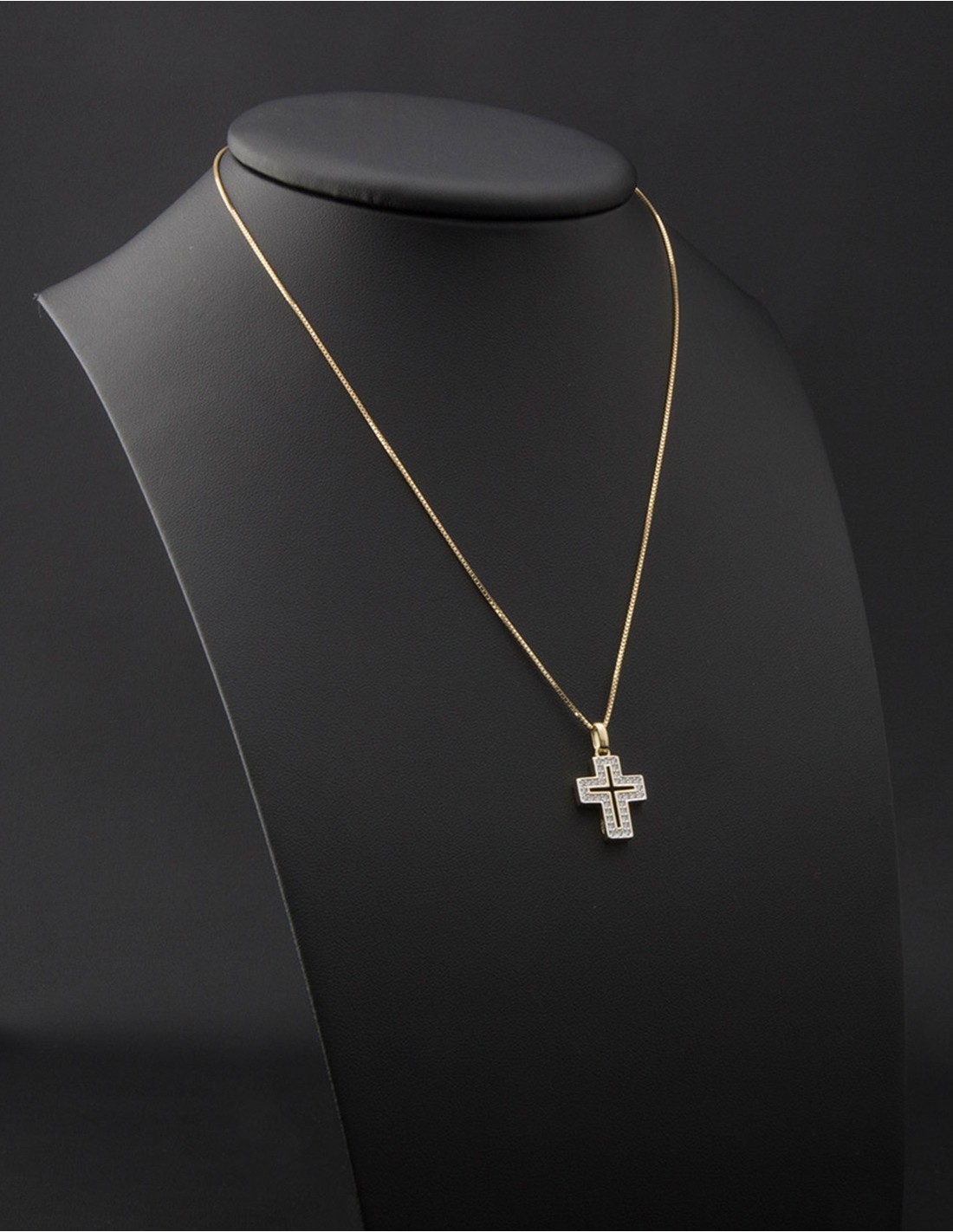 The carefully defined contours of the cross give the piece a bold yet balanced presence. Each cubic zirconia is precisely set to create a continuous line of brilliance that enhances the architectural openness of the design. The smooth Gold Plated surface reflects light with warmth and depth, while the inner negative space gives the cross a contemporary character that feels both graceful and distinctive.