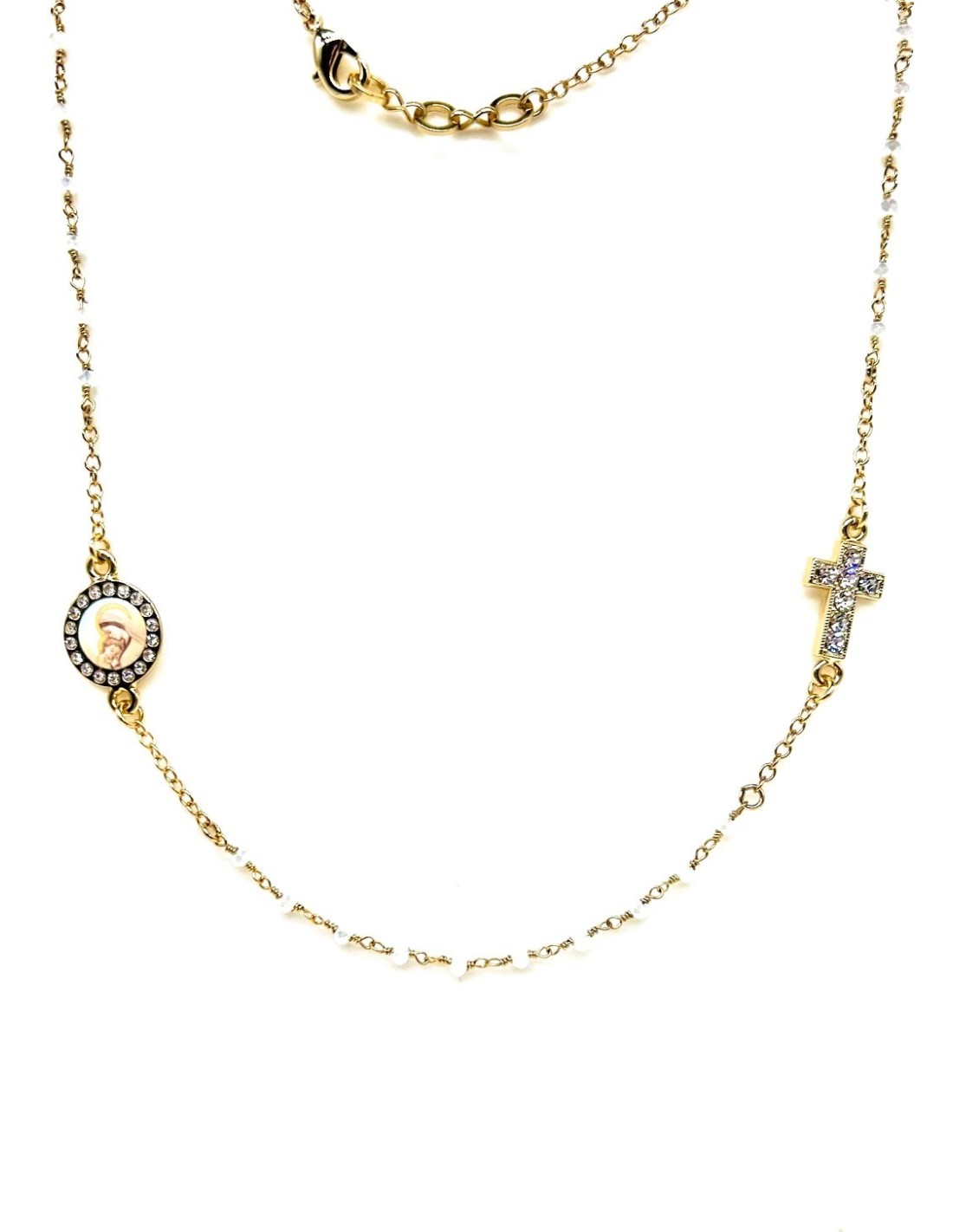 Crucifix cm 4,5 x 2,3 - inches 1,8 x 0,9 - Beads 6mm - 0,2 in Length 46,5 cm - 18,3 in
