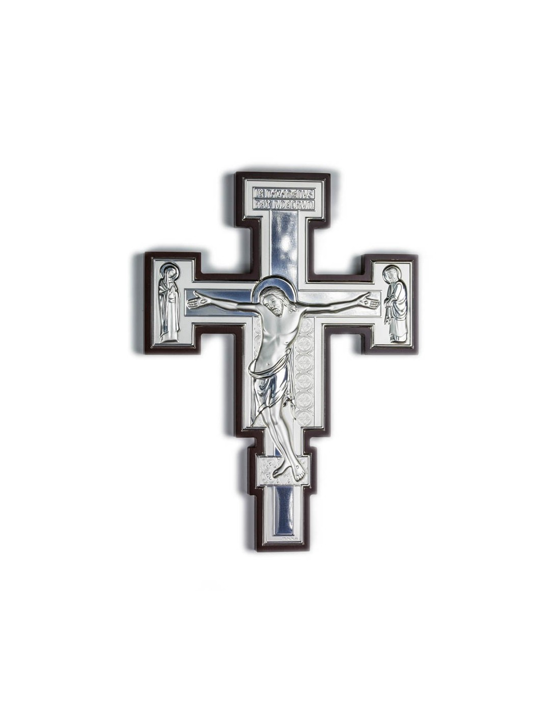 A finely crafted Sterling Silver bilaminate San Damiano Wall Crucifix, blending timeless design and spiritual meaning. A beautiful devotional piece for home, chapel, or gifting. Made in Italy.
