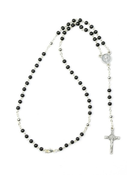 Mini Glass Pearls Rosary: Crucifix cm 2,5x1 inches 1x0,4 - Beads 3mm 0,12in Lenght 37cm 14,5in